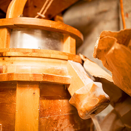 Sie erzählen die Geschichte unseres Brots. Sauerteig-Brot entsteht nicht an einem Tag. Man braucht etwas Geduld. Bereits am Vortag mischen und kneten wir den Teig, sodass er über Nacht gären kann. Auch den Ofen heizen wir schon am Abend vorher mit trockenem Buchen-, Birken- und ein wenig Kiefernholz, sodass er am Backtag die richtige Temperatur hat.