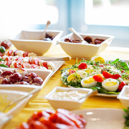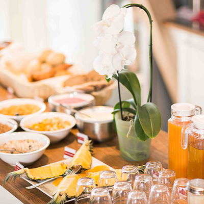 Wie startet ihr am liebsten in den Tag? Typisch französisch mit einem Croissant und Marmelade, ganz bodenständig mit einer deftigen Stulle oder nordisch by nature mit einem ‹Traum am Meer›? In unserer Karte findet ihr auf jede Frühstücksstimmung die passende Antwort, und wenn ihr möchtet, könnt ihr eure Frühstückswahl mit zusätzlichen Leckereien upgraden. An Sonntagen bleibt euch die Qual der Wahl erspart, denn unser großes Büfett bietet so ziemlich alles, was das Herz begehrt.