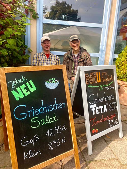 Und jetzt was Deftiges! Auf alle, die es herzhaft mögen, warten hausgemachte Delikatessen. Ihr habt die Wahl zwischen Pizza, Salaten, Suppen und großzügig belegten Stullen. Wir kochen jeden Tag – und das mit Leidenschaft. Fragt deshalb gern nach unserem täglich wechselnden Tagesgericht. Die Zutaten für unsere Gerichte stammen aus eigener Herstellung. So könnt ihr sicher sein, dass alles bio ist.