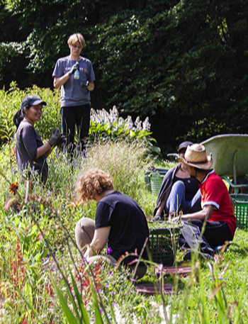 Für unsere Gärten haben wir ein tolles Team an fleißigen Helfer*innen – ein Mix aus Gärtner*innen, Volunteers, Praktikant*innen und Community-Mitgliedern. Vor allem Sommerabende sind prädestiniert für abendliche Jäte-Aktionen mit guten Gesprächen in schönem Ambiente.