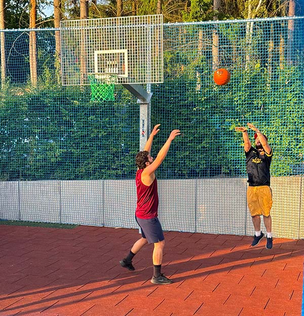 Da langes Sitzen, einseitige Belastungen und Fehlhaltungen ihren Tribut zollen, haben wir kurzerhand zusammen mit unserem Physiotherapeuten ein eigenes Gym mit Fitnessgeräten eingerichtet. Allein oder auch angeleitet können sich unsere Community-Mitglieder hier indoor in Form bringen, einzelne Körperpartien stärken oder ein bisschen Workout betreiben.
