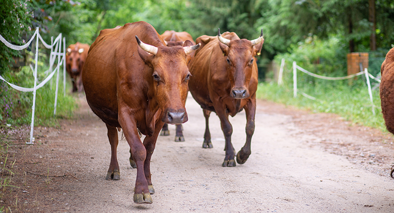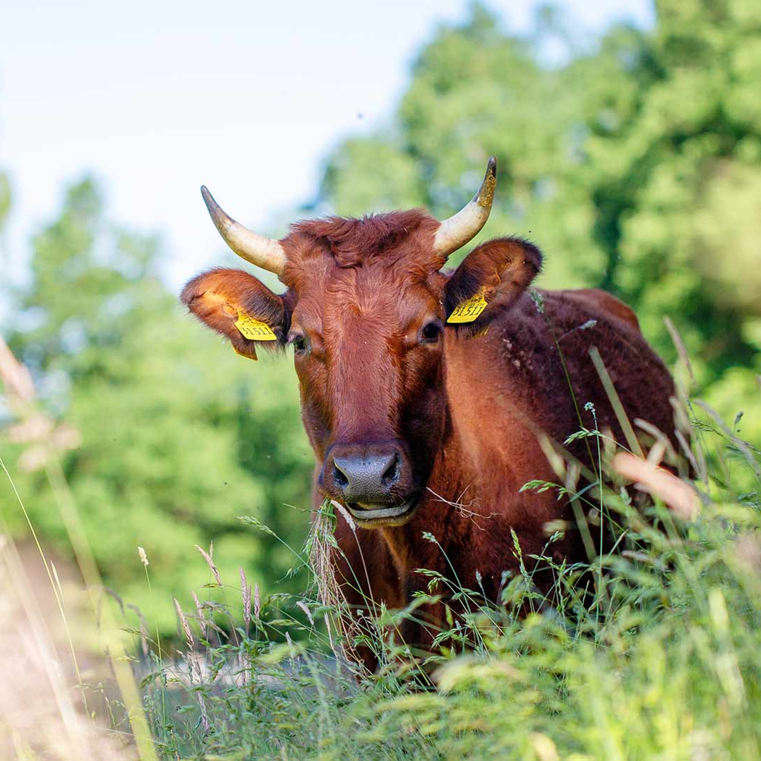 Wir kennen unsere Kühe, seit sie Kälbchen sind, und verfolgen gespannt, wie sie wachsen. Greta und Co. leben direkt neben der Meierei auf dem angrenzenden Arche-Hof. Auch sie gehören zu den alten Haustierrassen, die wegen zu wenig ‹Leistung› vom Aussterben bedroht sind. Wir lieben sie besonders und tragen gerne dazu bei, dass sie uns erhalten bleiben. Der Mix aus Arche-Hof und Demeter-Landwirtschaft ist nicht nur gut für die Tiere, sondern auch für Mensch und Erde.