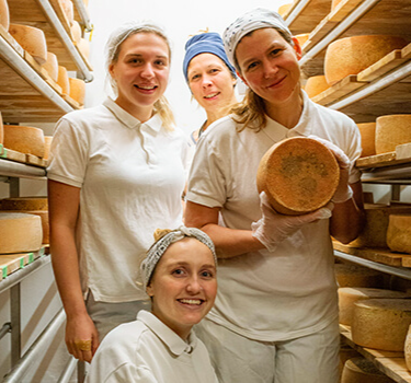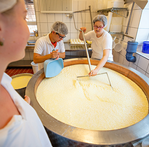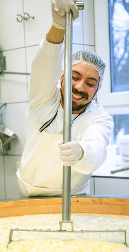 Das könnt ihr bei uns. Meldet euch einfach zur Meierei-Führung oder zu einem unserer Käse-Seminare an, schaut uns beim Käsemachen zu und macht einfach mal mit. Lea und ihr Team erzählen euch alles, was ihr schon immer über die Käseherstellung wissen wolltet. Und wer weiß: Vielleicht entdeckt ihr eine ganz neue Leidenschaft!