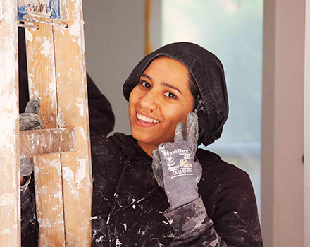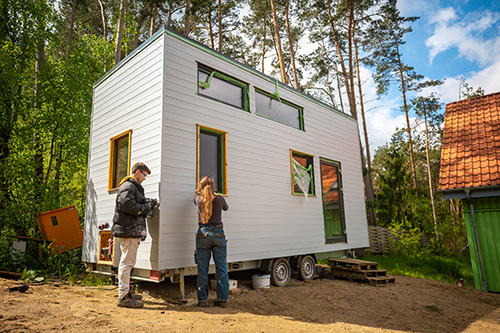 Gleich neben der Flachsenberg-Siedlung sind nun neun Tiny Houses drauf und dran, fertig zu werden. Und wie sich das für nachhaltiges Bauen gehört, sind die kleinen Schmuckstücke aus dem nachwachsenden Rohstoff Holz. Da bei diesen Häusern das ganze Leben in einem Raum stattfindet und der Mensch zu Ausdünstungen jeder Form neigt, war es ganz wichtig, das Ganze diffusionsoffen zu gestalten, das heißt aus Materialien, welche feuchte Luft nach draußen abgeben.