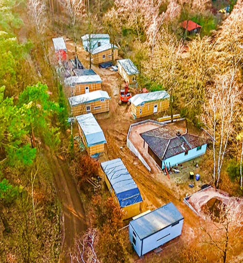 Sie wächst und verändert ihr Gesicht mit den Ideen, die unsere Community-Mitglieder einbringen. Derzeit leben in den bunten Holzhäusern zum größten Teil Wohngemeinschaften und Menschen aller Generationen. Das macht diesen freundlichen, von Wald umgebenen Ort so lebendig. Weitere Häuser sind in Planung.