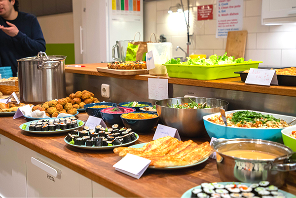 - Bio-Essen rund um die Uhr; Montag bis Samstag Mittagessen in der Kantine
