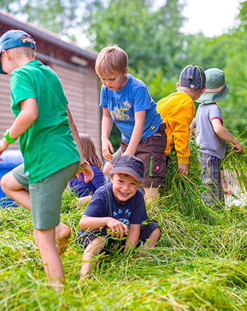 Frei nach dem Grundsatz ‹Es braucht ein ganzes Dorf, um ein Kind zu erziehen.› begleitet unsere gesamte Community das Heranwachsen unserer Jüngsten, nicht immer ganz ordentlich, aber dafür mit ganz viel Herz und Elan. Zu lernen gibt es am Michaelshof jede Menge. Wo sonst können Kinder schon bei der Geburt eines Lämmchens dabei sein oder Englisch mal eben so beim Spiel auf der Dorfstraße lernen?